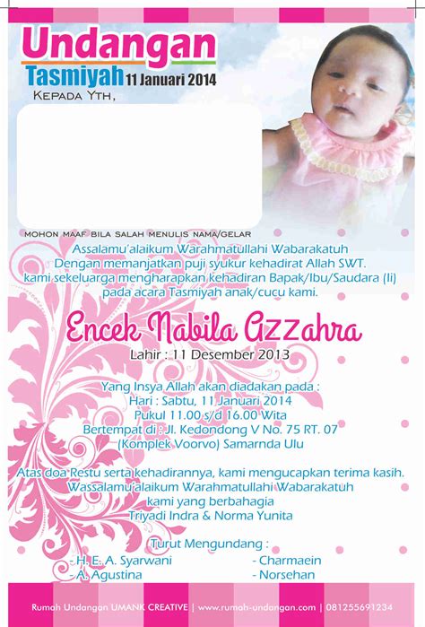 Contoh Undangan Aqiqah Resmi 0896 7465 4330 Wa Undangan