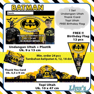 1 Set Undangan Ultah Anak Kartu Souvenir Topi Ulang Tahun Batman Superman