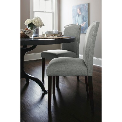 Corner block, glued, and screwed. Target / furniture / living room furniture / chairs / nailhead : 18 1/2 w x 39 h x 23 d. Buy top selling products like safavieh jappic side chair with nailhead trim (set of 2) and bassett mirror company fortnum linen tufted nailhead parsons dining chairs (set of 2). Is an attractive and welcome finishing touch in any dining room or kitchen. Belleze set of (2) modern chair dining seat parsons. Sarah st amand interior design. Handcrafted dining chair with nail head trim. Adding extra flair to this set. 18 1/2 w x 39 h x 23 d. Possesses a dull coating to deflect light Shop nailhead grey dining room chairs in a variety of styles and designs to choose from for every budget. These two dining chairs are upholstered in velvet and offered in your choice.